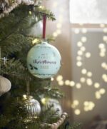 Kézzel festett „Első karácsonyom 2025” részlettel