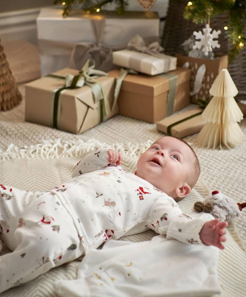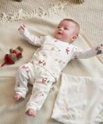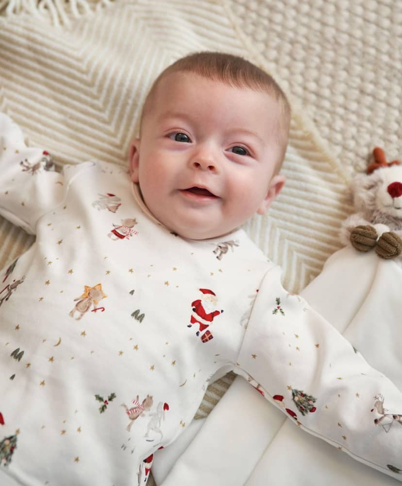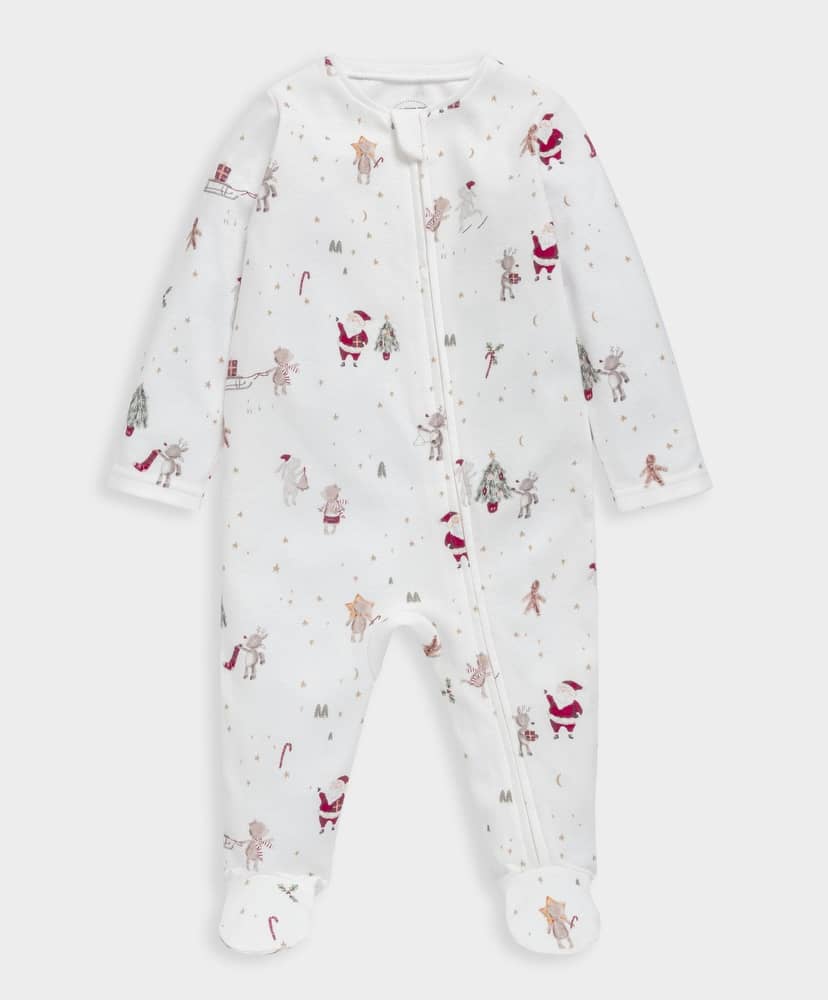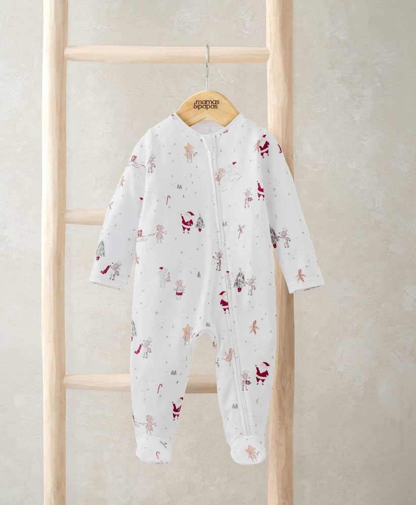 Tedd varázslatossá a karácsony előtti készülődést ezzel az ünnepi mintás rugdalózóval! A pihe-puha pamutból készült, zárt lábfejű rugi Télapót és vidám kis barátait ábrázolja, miközben a cipzáras nyílás megkönnyíti az öltöztetést és a pelenkacserét. Kényelmes, meleg, és pont olyan édes, mint az ünnep maga!