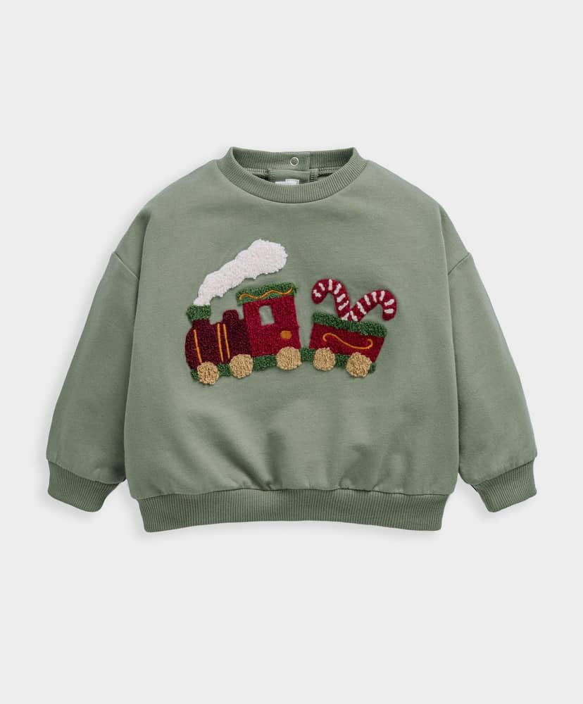 Csempéssz ünnepi hangulatot a gyerekruhatárba ezzel az imádnivaló karácsonyi pulcsival! A részletgazdag, hímzett és buklé applikációval díszített vonatminta garantáltan mosolyt csal mindenki arcára. A hátsó patentos záródásnak köszönhetően könnyű az öltöztetés, a puha, bordázott szegélyek pedig extra kényelmet nyújtanak a hűvös napokon.