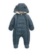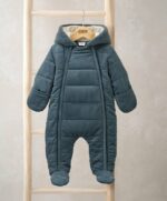 Ez a kék színű, steppelt kord anyagú bundazsák meleg és kényelmes viseletet biztosít a hideg napokon. A puha borg kapucni aranyos 3D fülekkel díszített, a hátrészen pedig finom gumis húzás gondoskodik a jobb illeszkedésről. A befordítható kesztyűrész és az elöl végigfutó cipzár megkönnyíti az öltöztetést, a vízszintes steppelés pedig még barátságosabbá teszi megjelenését.