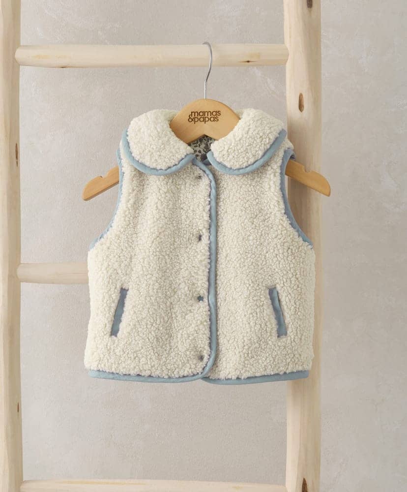 Kifordítható Borg anyagú és virágos kord mellény zsebekkel és párnázott béléssel.