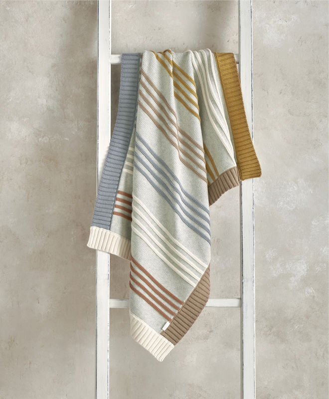 Vastag, puha tapintású kötött takaró modern, színes csíkos szegéllyel