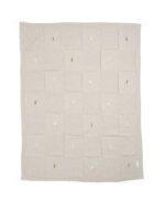 Ez a bájos, szürke kötött takaró igazi gyöngyszeme a babaszobának. A patchwork mintájú kötés különleges textúrát kölcsönöz a takarónak, amelyet játékos, hímzett nyuszi sziluettek díszítenek. A visszafogott szürke és semleges árnyalatok könnyedén illeszkednek bármilyen enteriőrbe, miközben a részletgazdag kidolgozás stílusos megjelenést biztosít. 100% pamutból készült, így különösen gyengéd az érzékeny bababőrhöz. Kombináld a nyuszis kollekció lepedőivel és hálózsákjaival, hogy teljes, harmonikus ágyneműszettet alkoss!