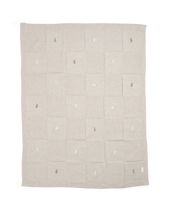 Patchwork mintájú kötött design finom hímzett nyuszi részletekkel