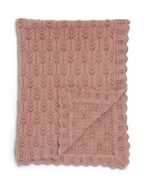 Sötétrózsaszín, meseszép kötött takaró cakkozott szegéllyel. Könnyű, szuperpuha, jól szellőző takaró kiságyba, babakocsiba.
