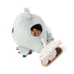 A játékos kisbálna imád úszkálni és közben bújócskát játszani. Tarts te is a halacska pajtásokkal és nézd meg milyen gyorsan tudnak elbújni Wally belsejében. Minden miniplüss külön hangot ad, ezek a csilingelő-zizegő hangok pedig kúszásra ösztönzik gyermekedet, amikor egyik-másik állat odébb gördül. A kicsik megtanulhatják, hogy az imádnivaló gömbhal hogyan jut be Wally pocakjába és ki onnan, különböző textúrákkal találkozhatnak, és felfedezhetnek egy rejtett babatükröt is a bálna farokuszonyánál. A színes címkék és a kispriccelt “víz” további érdekességek kisbabád számára. Fejleszti a koncentrációt és a kéz-szem koordinációt.
