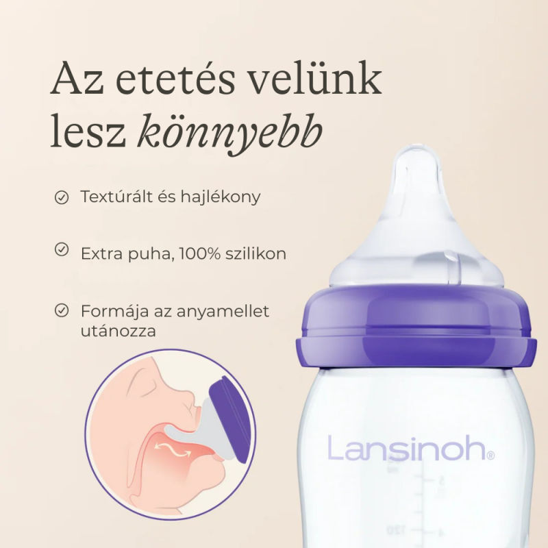 A Lansinoh 240 ml cumisüveg ideális választás szoptatott babák számára is, hiszen támogatja a természetes szopizási ritmust. Kialakítása segíti a könnyű átmenetet a szoptatás és a cumisüveges etetés között, miközben maximális kényelmet biztosít babád számára.
