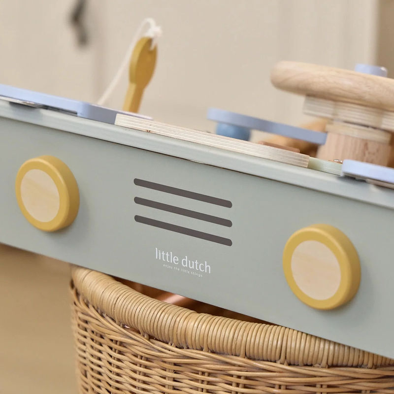 A Little Dutch fa montessori kormánykerék izgalmas szerepjátékra hívja a kicsiket, ahol saját kalandjaikat irányíthatják. A forgatható kormány, a gombok és a vidám hangok aktív felfedezésre ösztönöznek, miközben fejlesztik a képzelőerőt és a finommotoros készségeket. A mellékelt kártyákkal minden játék új útvonalat és új történetet kínál, így hosszú ideig leköti a kíváncsi kis felfedezőket.