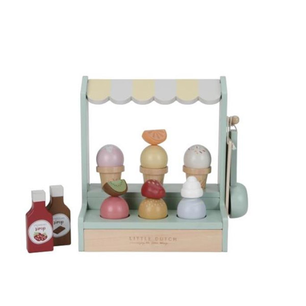 Melyik a kedvenc fagyid? Vanília vagy eper? Ez a fagyizó, elbűvölő sárga-fehér napellenzőjével arra csábít, hogy megkóstolj minden ízt. Három tölcsért tölthetsz meg a legfinomabb gombócokkal, és extra kiegészítőkkel még élvezetesebbé teheted a fagyizást. Hagyd, hogy kibontakozzon a kreatív játék, ahogy kisgyermeked felfedezi az édes fagyizó üzemeltetésének örömét. Legyen szó képzeletbeli vendégek kiszolgálásáról vagy az ártáblát tartó pénztáros szerepéről, ez a fa játék órákig tartó képzeletbeli játékra inspirál.
