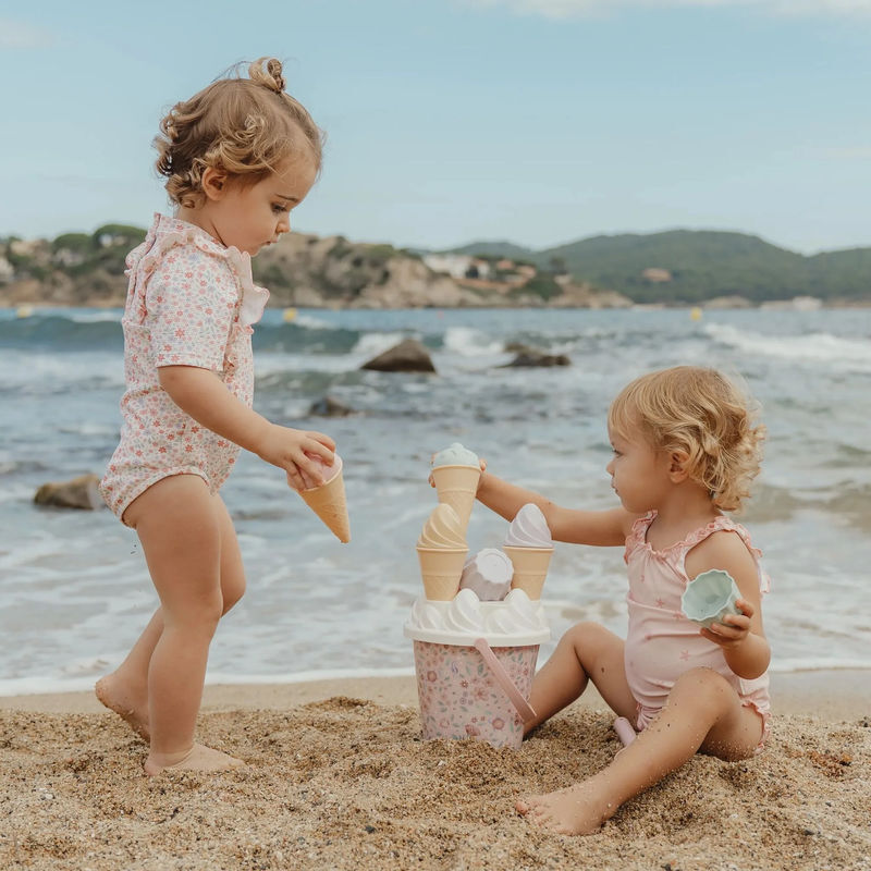 Little Dutch fagyis homokozó készlet – Dreamy Mermaid tökéletes választás a kreatív nyári játékokhoz. A 14 részes készlet fagylaltformákkal, kanállal és 17 cm-es vödörrel segíti a kicsiket, hogy saját homokfagyikat készítsenek már 18 hónapos kortól.