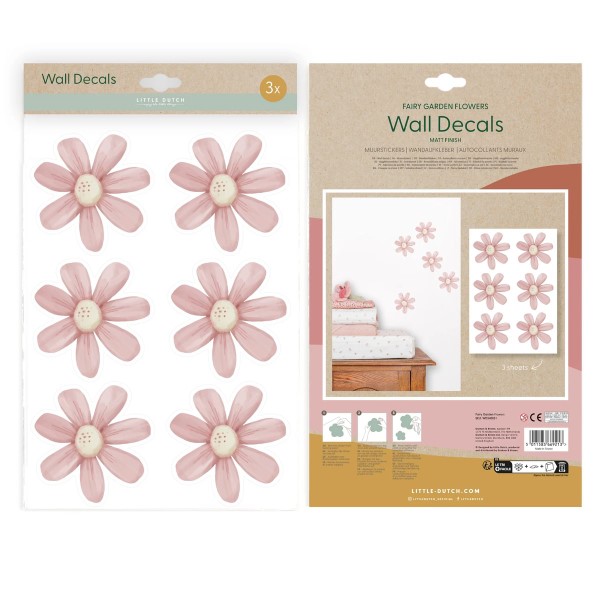 Little Dutch falmatrica szett virágok Fairy Garden (3 ív) – A4-es ív pasztell virágmintákkal. Könnyen felragasztható, eltávolítható, stílusos kiegészítő minden gyerekszobába.