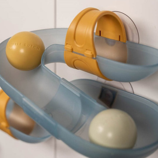 Ez a Little Dutch fürdőjáték golyópálya lesz gyermeked egyik imádott fürdős játéka. A 3 tapadókorongos pálya egyszerűen rögzíthető a fürdőszoba csempéjére és ugyanilyen egyszerűen le is szedhető. A kanyargós és egyenes elemekkel változatos golyópálya építhető. A játék szuperül fejleszti a finommotoros készségeket és a probléma megoldást.