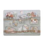 Találkozz a farm állataival és ismerd fel formájukat, hangjukat ezzel a mókás Little Dutch hangos puzzle-lel! Amikor a kiválasztott állatot gyermeked visszateszi a helyére, akkor rögtön hallani is fogja annak hangját.7 állat és 1 traktor keresi helyét. Ez az ügyességi-és logikai játék szuperül fejleszti a kéz-szem koordinációt és stimulálja a baba szókincsét.