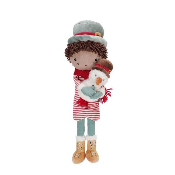 Jake, a plüss baba, puha játék készen áll a karácsonyra! Mókás karácsonyi kalappal és csíkos téli ruhával, hóemberrel tépőzáras kezeiben. Little Dutch Jake Karácsonyi baba egy csinos dobozban érkezik. Szuper karácsonyi ajándék a fa alá.