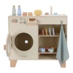 A játék tartalmaz minden szükséges kiegészítőt a képzeletbeli házimunkához: 4 csésze, 4 csészealj, 2 tányér, mosogatószer, szappantömbök és egy konyharuha is része a szettnek. A kompakt méret és a részletgazdag kidolgozás lehetővé teszi, hogy tökéletesen illeszkedjen a Little Dutch játékkonyha és hűtőszekrény mellé, így komplett háztartási játszósarok alakítható ki.