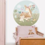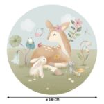 Little Dutch kerek falmatrica – Fairy Garden (100 cm): prémium minőségű, könnyen felhelyezhető és eltávolítható dekoráció virágokkal, állatokkal és a Fairy Garden mesés világával.