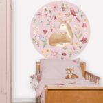 Little Dutch kerek falmatrica – Fairy Wonders (100 cm): prémium minőségű, könnyen felhelyezhető és eltávolítható dekoráció virágokkal, állatokkal és a Fairy Garden mesés világával.