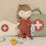 Ez a Little Dutch orvosos játékszett babával lesz gyermeked kedvenc szerepjátéka Jim-nek egy kis ápolásra van szüksége és alig várja, hogy játszhasson veled! A szettben mindent megtalálsz, ami a vizsgálathoz és gyógyításhoz kell. Az orvosi táska nyitható-zárható, belsejében egy ággyal, ahová az ápolásra szoruló játszópajtást lefektetheted.