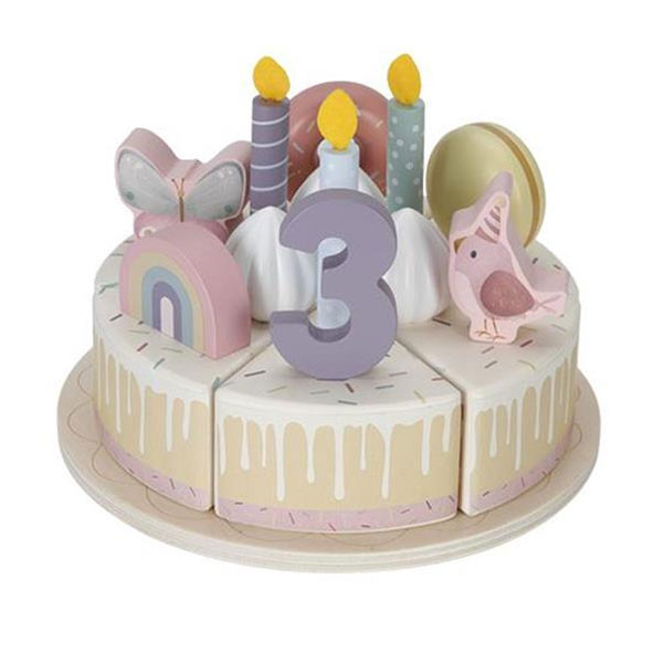 Hip, hip, hurrá! Elő a girlandokkal, mert a Little Dutch imádnivaló tortáival minden nap ünnep! Díszítsd a tortát macaronnal, fánkkal, szivárvánnyal, állatfigurákkal és tejszínhabbal, és kínáld meg vele a vendégeket! Jó szórakozást a buliban! A készlet tartalmaz hat darab tortaszeletet tálaló tálcán, egy tortalapátot, fánkot, macaront, madárkát, pillangót, szivárványt, gyertyákat, tejszínhabot és számos díszítőelemeket (1-5).