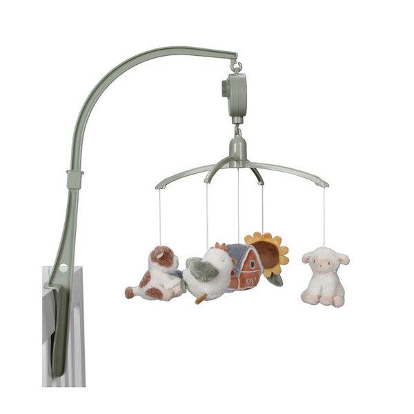 Ez az imádnivaló fából készült Little Dutch zenélő körforgó kedves kis dallamával megnyugtatja a kicsiket, segít nekik álomba merülni. 5 különböző édes puha, farmos karakter csüng a körforgón: boci, kisbárány, kakas, napraforgó, pajta. A gyermekek szívesen nézik a színes plüssöket és azok lassú mozgását, mindez stimulálja vizuális képességek fejlődését. A játék könnyedén a kiságyhoz rögzíthető.
