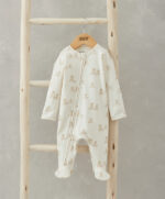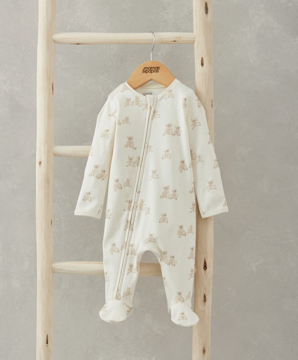 Ez a kedves, teljes felületén macimintás rugdalózó tökéletes választás a mindennapokra. Puha, 100% pamut anyagból készült, hogy maximális kényelmet biztosítson a baba bőrének. A hosszúujjú kialakítás visszahajtható mandzsettákkal és a praktikus cipzáras nyitás segít az öltöztetésben – így a reggeli készülődés is könnyedén megy majd!