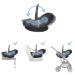 Teljesen fekvő pozíció – A Pebble 360 Pro teljesen fekvő helyzetbe dönthető – az autóban vagy babakocsihoz rögzítve, és a FamilyFix 360 Pro bázistalppal vagy anélkül is használható.