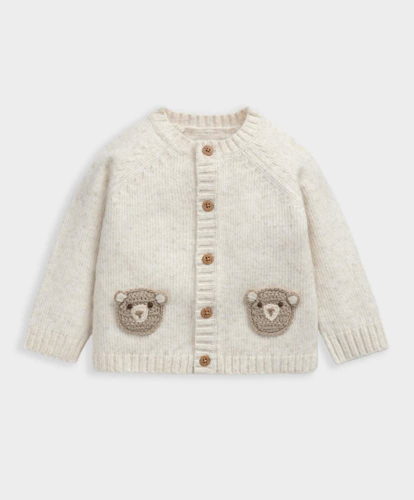 Hosszú ujjú sodrott mintás kardigán hímzett medve arccal