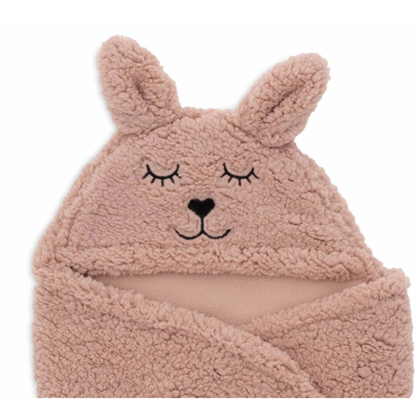 Meleg takaró átlapolós – Nyuszi – Wild Rose bolyhos nyuszis takaró Wild Rose színben. Külső része bundaszerű, belül extra puha. Tépőzáras rögzítés, nyuszifüles sapka, újszülött kortól ideális.