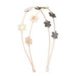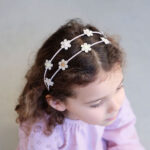 Mimi and Lula Margarétás dupla hajpánt, tökéletesen ötvözi a stílust és az eleganciát. Krémszínű margarétákkal díszített, melyek csillogó és fémes középpel készültek, ideális minden kislány virágos öltözékéhez.