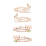 Mimi and Lula Nyuszi és tulipán csatok – 4 db-os szett, varázslatos tavaszi hangulatot áraszt. Játékos nyuszik és lágy rózsaszín tulipánok díszítik a finoman kidolgozott csatokat, tökéletes ajándék húsvétra is.