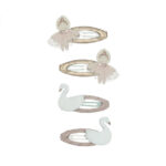 Ismerd meg a Mimi and Lula Swanlake csatok – 4 db-os szettet, amely tökéletes ajándék lehet a kis balettművészek számára! A csomagban található két bájos balerinás és két elegáns hattyús csat.