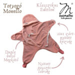 - A Monello Kiscsillag különlegessége az úgynevezett „álompor hatás”: sok anyuka arról számolt be, hogy a baba ebben a takaróban pillanatok alatt elalszik. Ez nem véletlen – minden Kiscsillagot kézzel, nagy odafigyeléssel, és egy csipetnyi álomporral meghintve készítenek, hogy a pici békésen pihenhessen. Speciális, egyetlen rétegű, baby soft anyaga lágyan körülöleli a testet anélkül, hogy ránehezedne, így a baba szabadon mozoghat, miközben meleg, biztonságos ölelés veszi körül – akár az anyaméhben.