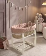Gyönyörű, puha jersey anyagú, apró virágmintás steppelt huzattal bélelt pálmalevélből szőtt mózeskosár. A természet ihlette Wildflower kollekció része. Egy virágos gumis lepedő is jár a mózes matrachoz.