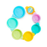 A Munchkin Connect-A-Cup fürdőpoharak szórakoztatóvá varázsolják a pancsolást. Számozott poharak, amelyek rakosgathatók, összekapcsolhatók és egyedi locsolási mintákat hoznak létre. A szett 7 színes poharat tartalmaz, köztük egy forgó poharat is. Fejleszti a finommotorikát és a kéz-szem koordinációt. 9 hónapos kortól ajánlott.