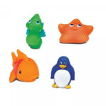 A gyerekek megismerkedhetnek a tengeri élőlényekkel fürdés közben, ezzel lesz még szórakoztatóbb a kádban töltött idő. 4 db kis figura amelyek mind élénk színűek és a kicsi kezekre tervezett méretben készültek. Játék közben fejlődik a motorikus képességük, látásuk és mozgásuk komplexebbé válik. A kis figurákkal spriccelni lehet a vizet, és minőségi anyaguk által sokáig lehetnek a pancsolásban társak.