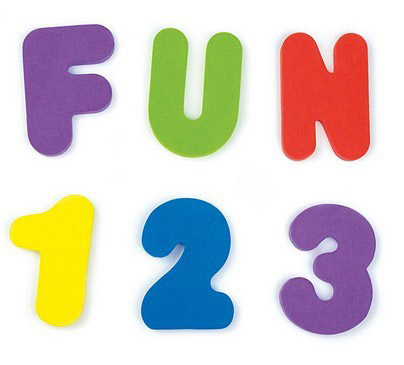 Összesen 36 darabból álló készlet, amelyben 26 betű és 10 szám található, 6 féle vidám színben. Puha habszivacsból készültek, amelyek nem károsak a kicsik egészségére.