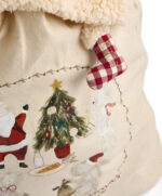 Tedd még varázslatosabbá a karácsony reggelt ezzel a gyönyörűen illusztrált Télapó zsákkal! Semleges színű kalikó anyagból készült, puha borg szegéllyel, és egy bájos ünnepi jelenetet ábrázol, amelyen Télapó kedves karácsonyi állatfiguráink társaságában izgatottan gyűlik össze a fa körül. A levehető „2025” feliratos kis zokni különleges emlékként őrzi meg az évet.