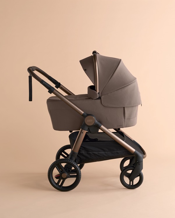 A levehető, lehajtható mózeskosár borítással könnyedén és hangtalanul fektetheted le a babát, míg a szellőző paneles kupola gondoskodik a kellemes hőmérsékletről és a megfelelő árnyékolásról. A mózeskosár tökéletesen harmonizál az Ocarro 2 babakocsival: ugyanazok a puha, újrahasznosított anyagok, luxus barna tónusok és matt fémes részletek alkotják ezt az elegáns megjelenést.