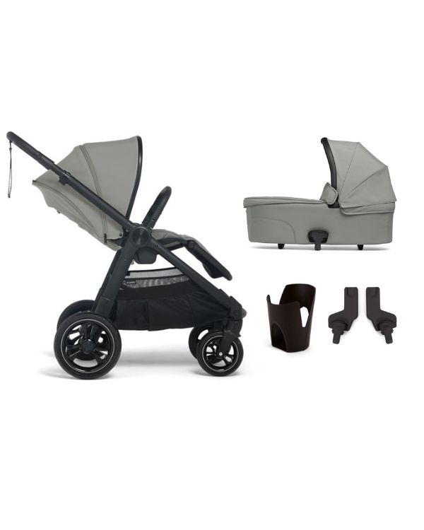 A NÉGY RÉSZES CSOMAG TARTALMAZ EGY OCARRO BABAKOCSIT ÉS MÓZESKOSARAT, AUTÓSÜLÉS ADAPTERT ÉS POHÁRTARTÓT.