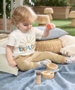 A “Fedezd fel a világot” baba és totyogó kollekció stílusos és kényelmes, prémium alapdarabokat és mindennapi ruhákat tartalmaz, amelyek összehangolhatók vagy külön is viselhetők, így egy könnyen hordható és egyedi megjelenésű ruhatárat biztosítanak. Stílusos és tökéletes mindennapi viseletre való melegítőnadrág. Bordázott mandzsetták és szegélyek. Gumis derék az egyszerű öltözködésért.