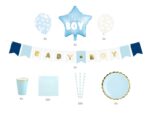 Party dekor szett, It’s a Boy tartalmaz egy Baby Boy feliratú girlandot, 6 darab papírpoharat, 6 darab papírtányért, 10 darab papírszívószálat, 20 darab papírszalvétát, 1 darab fólia lufit, és 3 darab pöttyös és 2 darab felhős latex lufit. Tökéletes szett egy babaváró buliba.