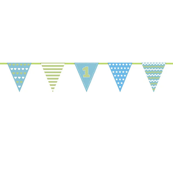 Party girland, Első szülinap, kék-világoszöld, 135 cm