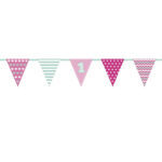 Party girland, Első szülinap, rózsaszín-menta, 135 cm