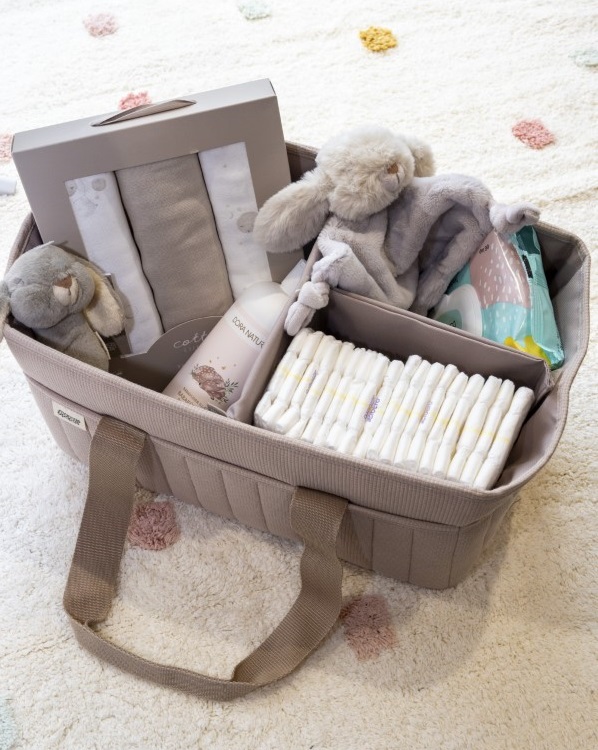 Stílusos tárolási megoldás minden pelenkázáshoz szükséges kellék számára. Külső zsebekkel és három belső rekesszel rendelkezik, melyeket eltávolítható betétekkel láttak el. A nagy fogantyúk segítségével könnyedén mozgathatod a ház különböző pontjain, ahol épp szükség van rá. Használaton kívül laposra hajtható, így helytakarékosan tárolható. Természetes, puha, organikus pamut waffle anyagból készült, gyönyörű, lágy szürke árnyalatban, amely harmonizál a belső térrel.