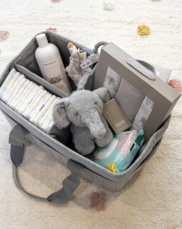 Stílusos tárolási megoldás minden pelenkázáshoz szükséges kellék számára. Külső zsebekkel és három belső rekesszel rendelkezik, melyeket eltávolítható betétekkel láttak el. A nagy fogantyúk segítségével könnyedén mozgathatod a ház különböző pontjain, ahol épp szükség van rá. Használaton kívül laposra hajtható, így helytakarékosan tárolható. Természetes, puha, organikus pamut waffle anyagból készült, gyönyörű, lágy szürke árnyalatban, amely harmonizál a belső térrel.