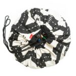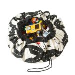 Play and Go játéktároló zsák és játszószőnyeg egyben. Praktikus tárolási, szállítási lehetőség a gyermek játékai számára. Minden kisgyermekes családban összegyűlik egy két doboz kis elemes játék, mint a Duplo, Lego, babák, autók, egyéb apró figurák, de mit csináljunk vele. Tárold a Play&Go játéktároló zsákban. A sok kis darabot beleszórhatod, és ha kell előveszed és játszószőnyegként tudjátok használni. Így többé nem kell a kanapé alól kihalásznod a játékokat. Egy perc alatt rend lesz. Nincs más dolgod, mint összehúzni a zsákot. Átmérője 140 cm.