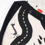 Mindkét oldala mintás: külseje villámos, belül pedig autópálya.