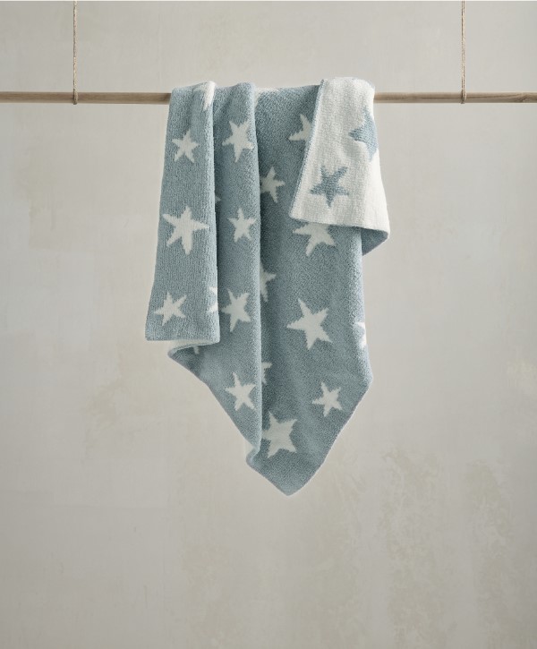 Szuperpuha, fehér csillagos mintájú zsenília takaró, tökéletes az első ölelésekhez.