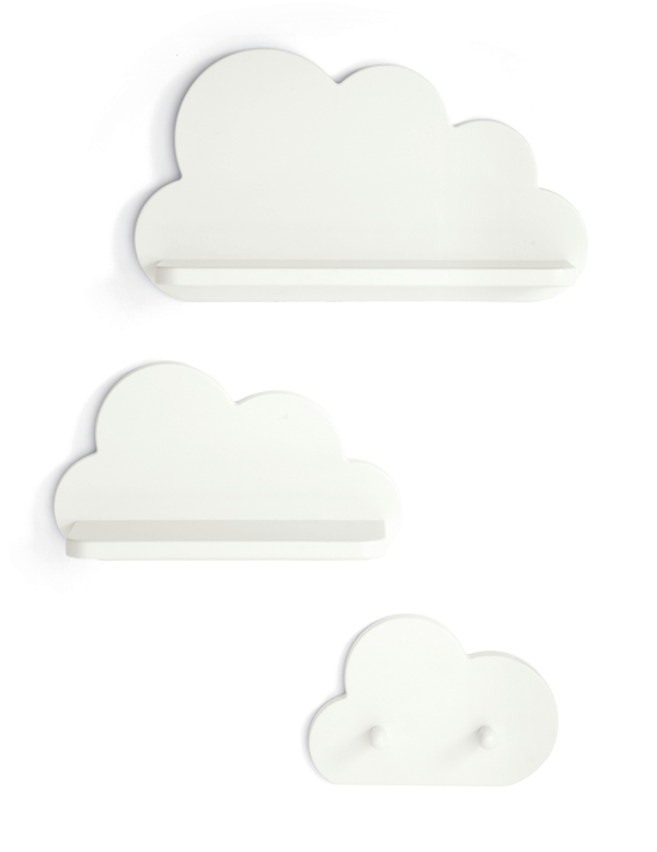 A játékos dizájn és a praktikus tárolási megoldások találkozása. Plüssöket és könyveket vagy a kedvenc fotóitokat is kiteheted ezekre, emellett felakaszthatod csöppséged takaróit vagy a kis kabátokat, hogy minden kéznél legyen.