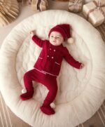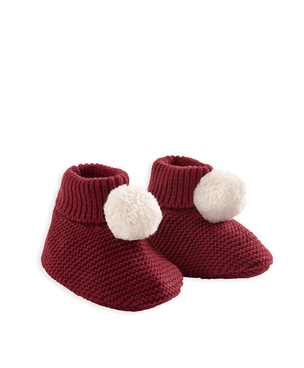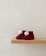Tökéletes választás ünnepi alkalmakra és hűvös napokra – ez a piros, puha kötött kiscipő pomponnal nemcsak melegen tartja a kis lábakat, de vidám megjelenést is kölcsönöz.